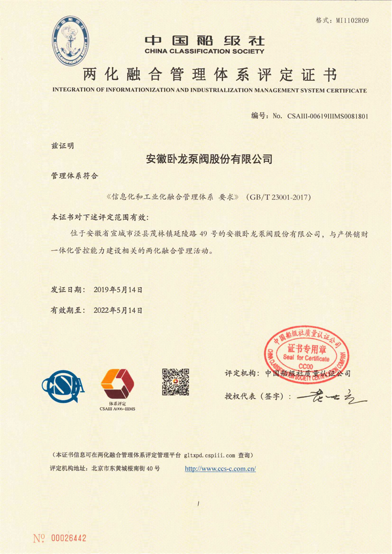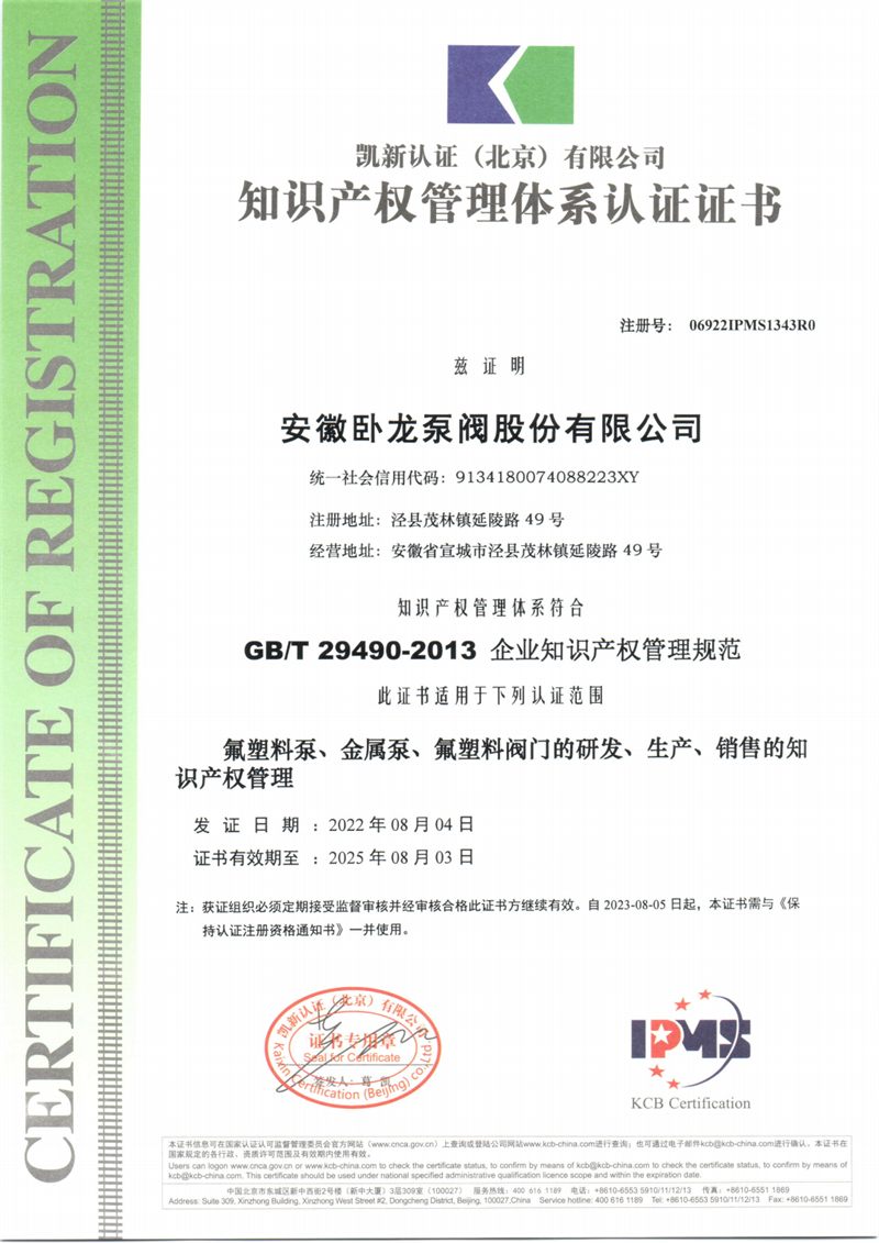 安徽臥龍泵閥現(xiàn)已取得二項發(fā)明專利,二十多項實用新型專利每年都有近十多個的新產(chǎn)品投入市場