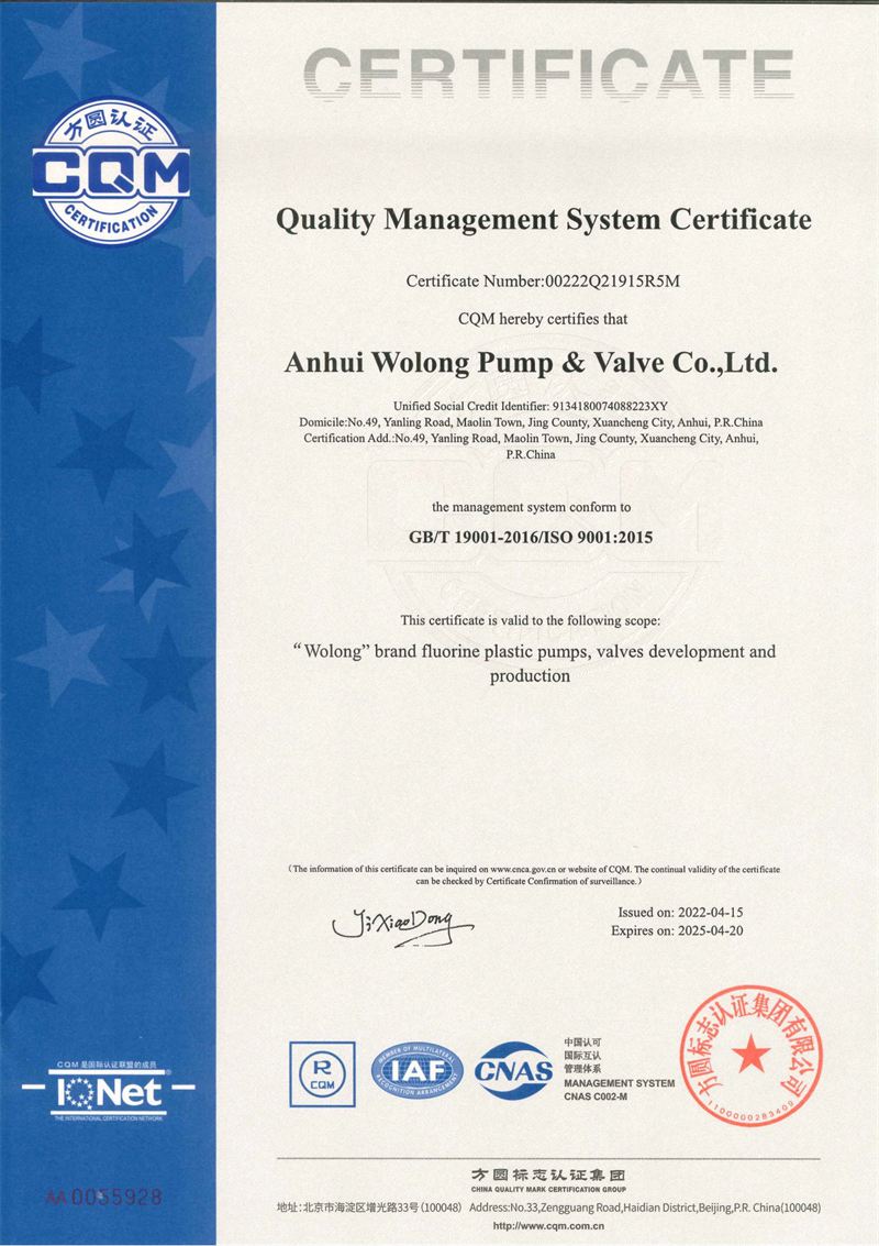 安徽臥龍泵閥股份有限公司:氟塑料泵閥產(chǎn)品生產(chǎn)和研發(fā)專家